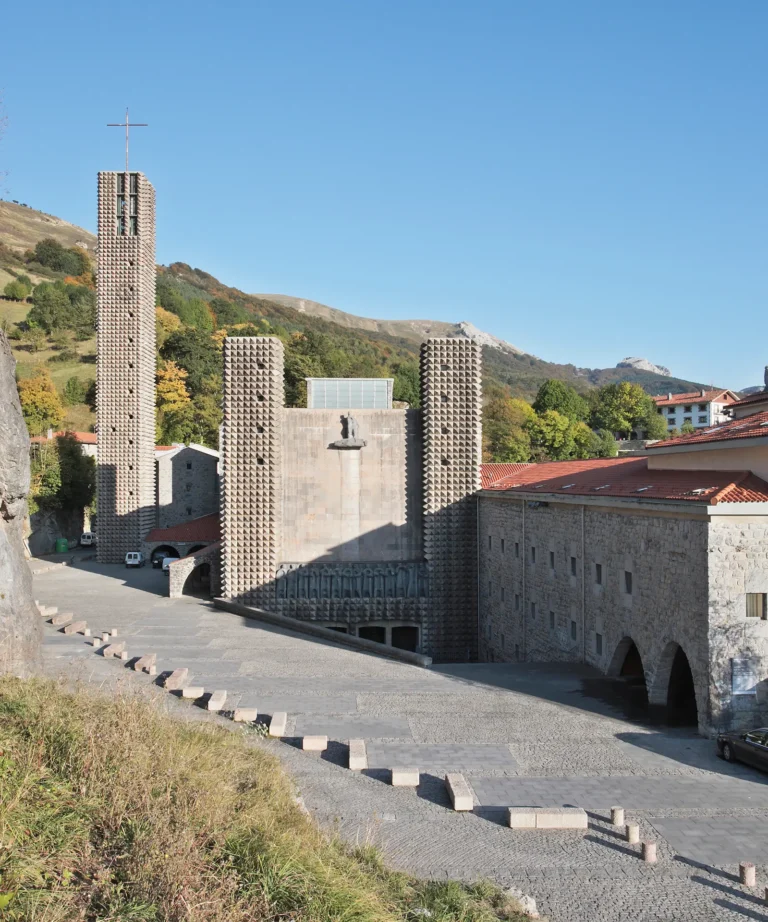 Arantzazuko Santutegia Oñatin dago, harkaitz eta sakanen gainean, ingurune malkartsu eta natural batean, eta historiaz eta espiritualtasunaz beteriko lekua da. Bere bizitza luzean zehar, hiru sute gainditu ditu (1553, 1622 eta 1834), eta behin baino gehiagotan berreraiki dute. Hala ere, 1951n, erabaki bat hartu zen: erreforma partzialekin jarraitu beharrean, basilika berri bat eraikitzea, bere tradizioaren solemnitatea islatuko zuena, baina lengoaia artistiko moderno batekin.